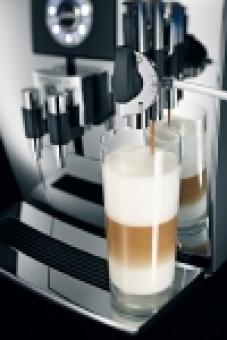 scomparto accessori integrato con 2 ugelli per cappuccino: uno per tazze da cappuccino fino a 110 mm e uno per bicchieri da latte macchiato fino a 150 mm,