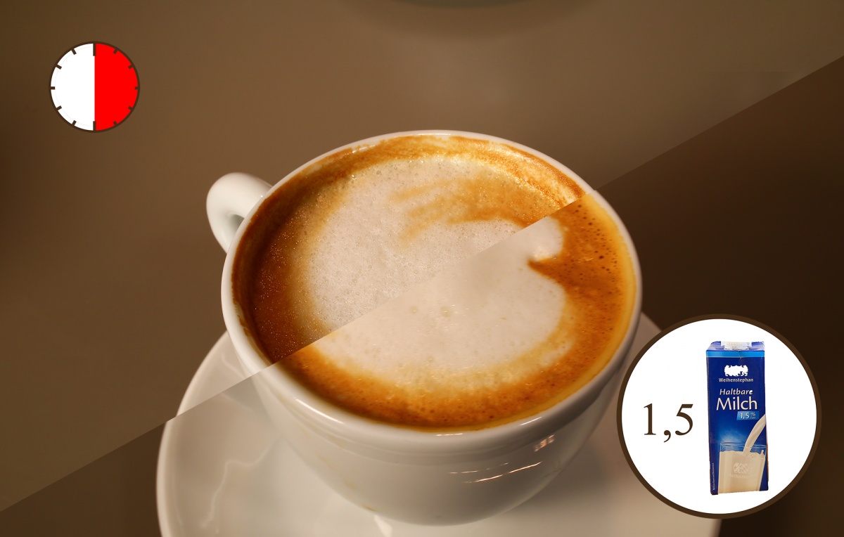 Cappuccino con latte UHT di Weihenstephan, 1,5% di grassi (figura 6/9)
